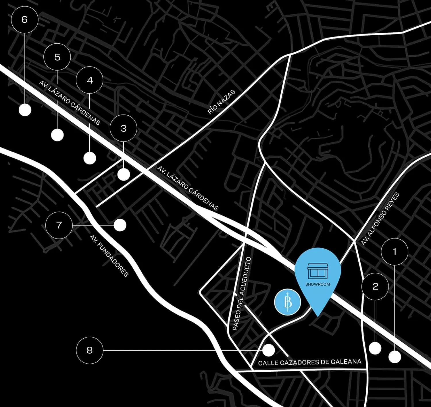 Ubicado en el sector Valle Oriente, dentro de uno de los corredores con mayor relevancia gastronómica, de entretenimiento, negocios y vivienda, en Boreal estarás conectado con la zona de mayor crecimiento y plusvalía de la ciudad. 1. Soriana Hiper 2. Home Depot 3. Plaza Fundadores 4. Centro Comercial Valle Oriente 5. Walmart 6. Costco 7. Plaza VO 8. TecMilenio Campus Las Torres